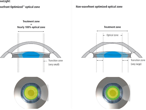 - 현재 시력교정에 사용되는 대부분의 레이저장비는 비구면이라는 각막의 특성을 보정하지 않은채 각막의 중심부와 주변부를 동일하게 절삭하여 근시와 난시는 교정되지만 구면수차가 증가하여 일부 환자들에게 야간 빛번짐등의 질적인 시력저하를 유발합니다. 이에 비해 알레그레토는 수술 후 증가하는 구면수차을 최소화하는 ablation profile 내장으로 wavefront guide 없이도 수차의 많은 부분을 차지하는 구면수차 교정이 가능합니다. 야간시력개선과 시력의 질 향상에 우수합니다.