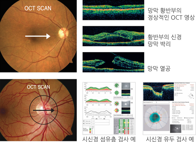 초음파의 해상력이 150㎛인데 비해 OCT의 해상력은 무려 1/20 수준인 8㎛이하이기 때문에 정밀성이 압도적으로 뛰어나며 검사의 용이성이 매우 뛰어나기 때문에 망막질환이나 녹내장을 보다 초기에 보다 정확하게 잡아낼 수 있는 최첨단 장비입니다. 또한 검사 대상에 접촉 시킬 필요가 없는 비접촉 비침투성이므로 환자에게 어떠한 불편도 주지 않는 장점이 있습니다. OCT하나로 시신경부터 각막까지 대학병원과 수준급의 병원에서 OCT를 채택하는 이유는 분명히 있습니다.